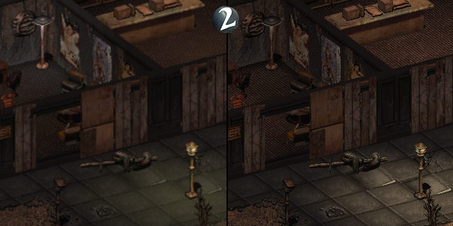 You can also already notice the quality and sharpness improvement on the rendering. The game brings more detail thanks to our heavy work to export all 14,000 + graphics from FRM to PNG format, with some quality rework, and rebuilt animations by decoding their offset from original files and building .fofrm files that are equivalent of the frame by frame gifs.