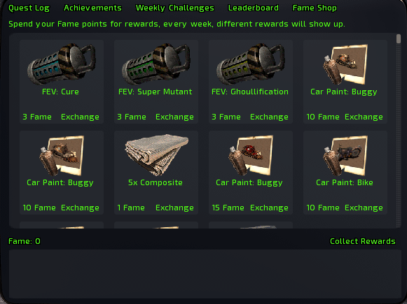 Completing weekly achievements earns you fame, you can spend this fame in the Fame Store.