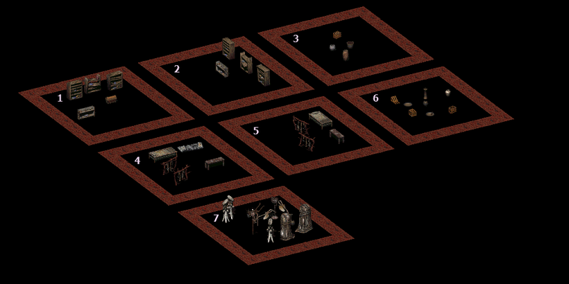 Above you can see the “list” of items that can spawn within the tribal settlements, the system picks up data from a map preset file and builds it into a preset on the server-side. Here a person can define what is going to spawn where – 1/2/3 are containers with different rotations that help to define against what wall can what be spawned, latter 4/5/6 is the same concept but for spawning sceneries, a flavor. And last 7 are the elements that will spawn outdoors in the settlements.
