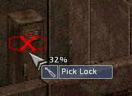 Using a lock pick set on hand or via hotkeys will increase the chance to open the lock. There are 2 variants for regular locks and for electronic locks. When in use, they reduce the lock’s complexity level and give a boost to user lock pick skill.