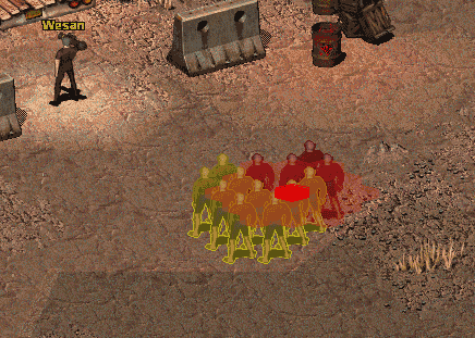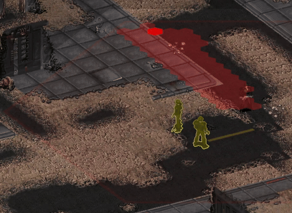 1hex marker under the target of 1hex. When the player is at one hex distance to the target and uses burst and has a mouse over the target, the hex under target is colored red. This helps a lot when there are a lot of enemies around and the player is not sure where to click to hit the target he wants.